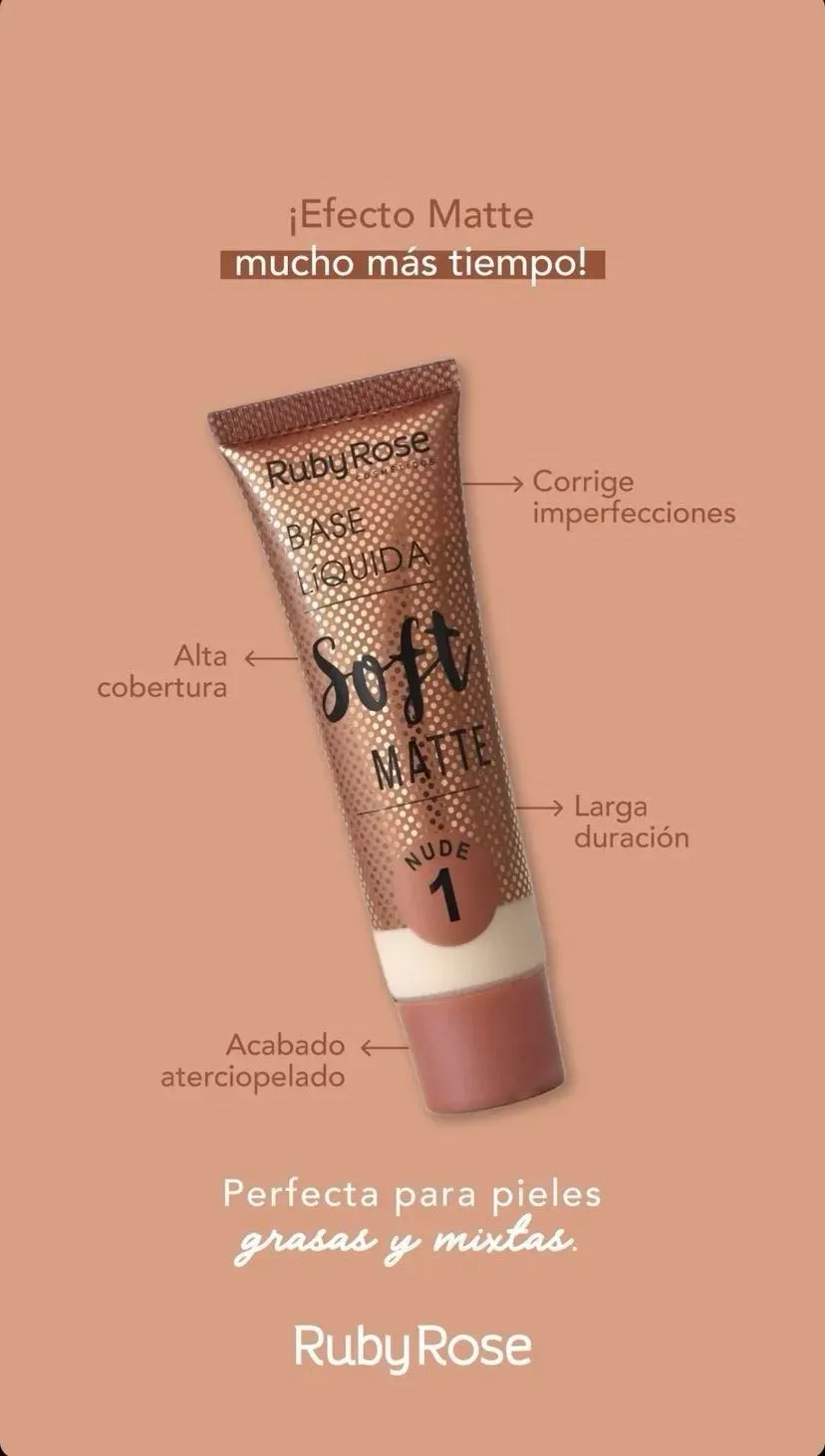 -La base Soft Matte, diseñada para controlar el exceso de grasa en la piel, disimular imperfecciones y proporcionar un acabado impecable, una cobertura excepcional y una duración prolongada.