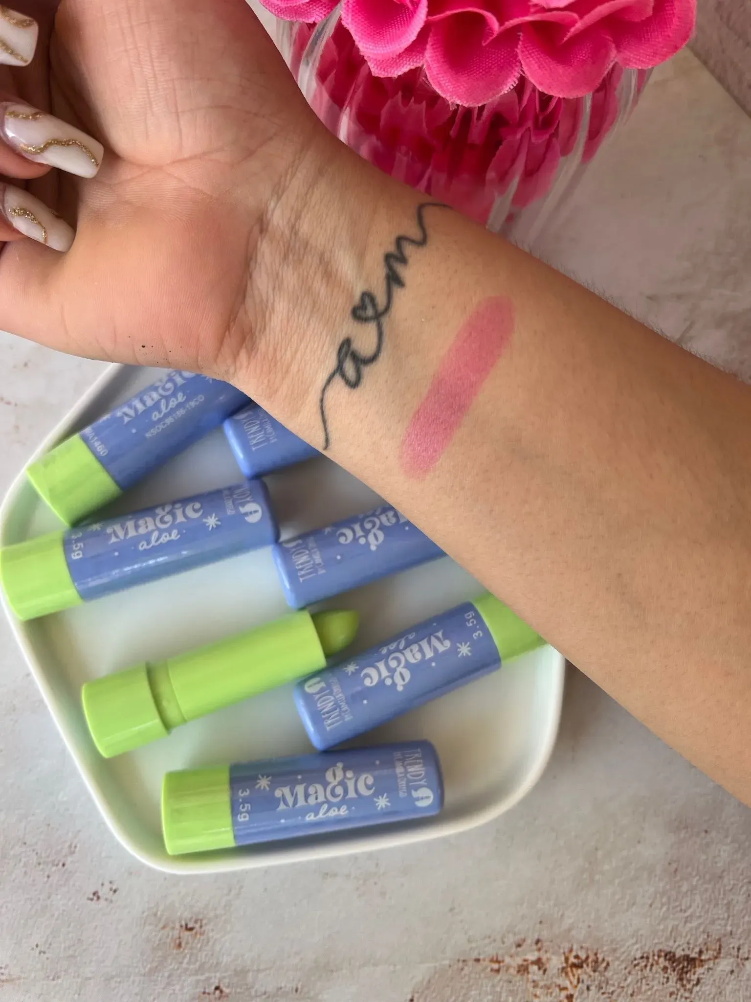 -Brillo mágico con aloe vera, su textura es hidratante y ultra ligera.