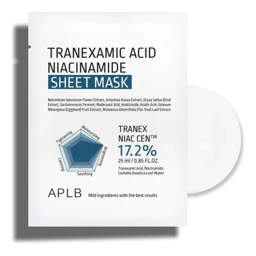 ¿Buscas una solución para las manchas, la opacidad y la falta de luminosidad? Te presentamos la Mascarilla de Velo Facial APLB Tranexamic Acid Niacinamide, tu nuevo aliado para una piel radiante y uniforme.