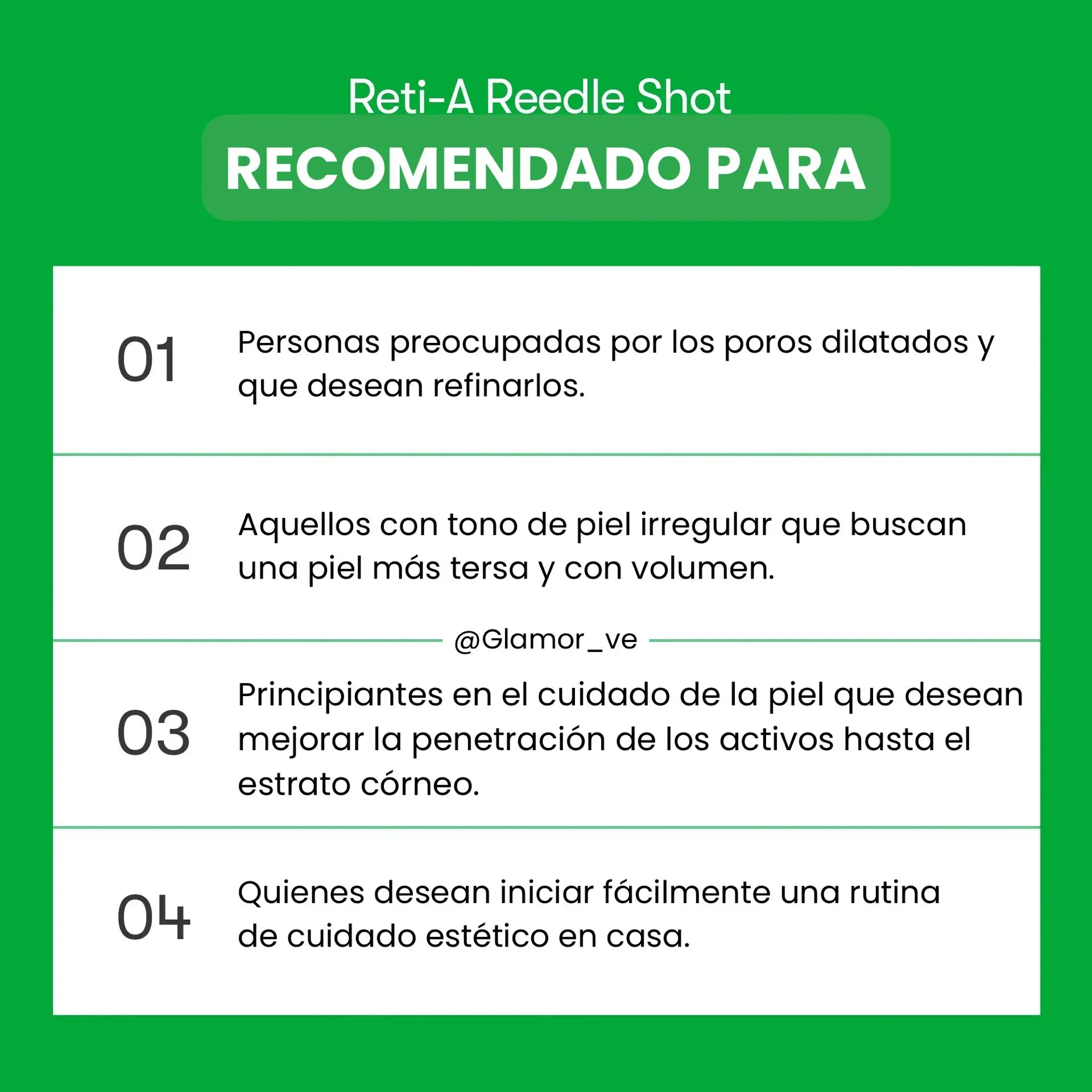 -Logra una textura de piel uniforme, densa y sin imperfecciones gracias a la sinergia innovadora de REEDLE SHOT y RETI-A.